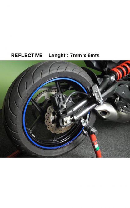 Wheel Stripe / Felgenrand Aufkleber durchgehend Reflektierender Klebestreifen für die Felge Durch den mitgelieferten Abroller ist das Aufbringen auf den Felgenrand kinderleicht aus selbstklebender reflektierender Spezialfolie einfaches montieren durch mitgelieferte Montagehilfe einfach am Felgenrand ansetzen und abrollen Breite: 7 mm Länge: 6 Meter (reicht für 2 Felgen Reserve)  Natürlich Rückstandsfreie Entfernung möglich! Farbe Blau