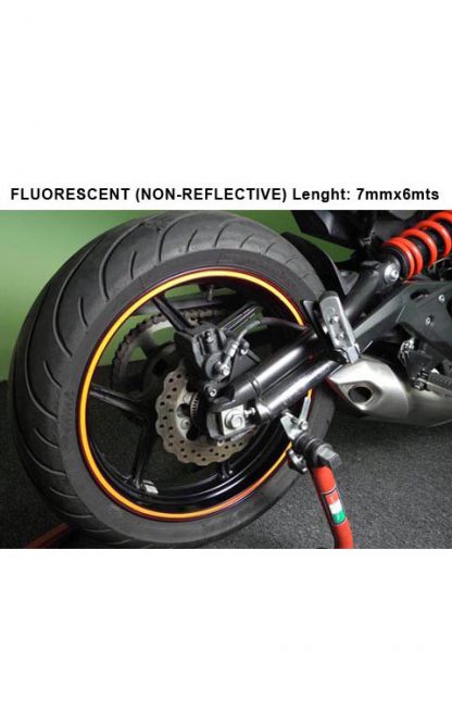Wheel Stripe / Felgenrand Aufkleber durchgehend Reflektierender Klebestreifen für die Felge Durch den mitgelieferten Abroller ist das Aufbringen auf den Felgenrand kinderleicht aus selbstklebender reflektierender Spezialfolie einfaches montieren durch mitgelieferte Montagehilfe einfach am Felgenrand ansetzen und abrollen Breite: 7 mm Länge: 6 Meter (reicht für 2 Felgen Reserve) Natürlich Rückstandsfreie Entfernung möglich! Farbe Neon Orange